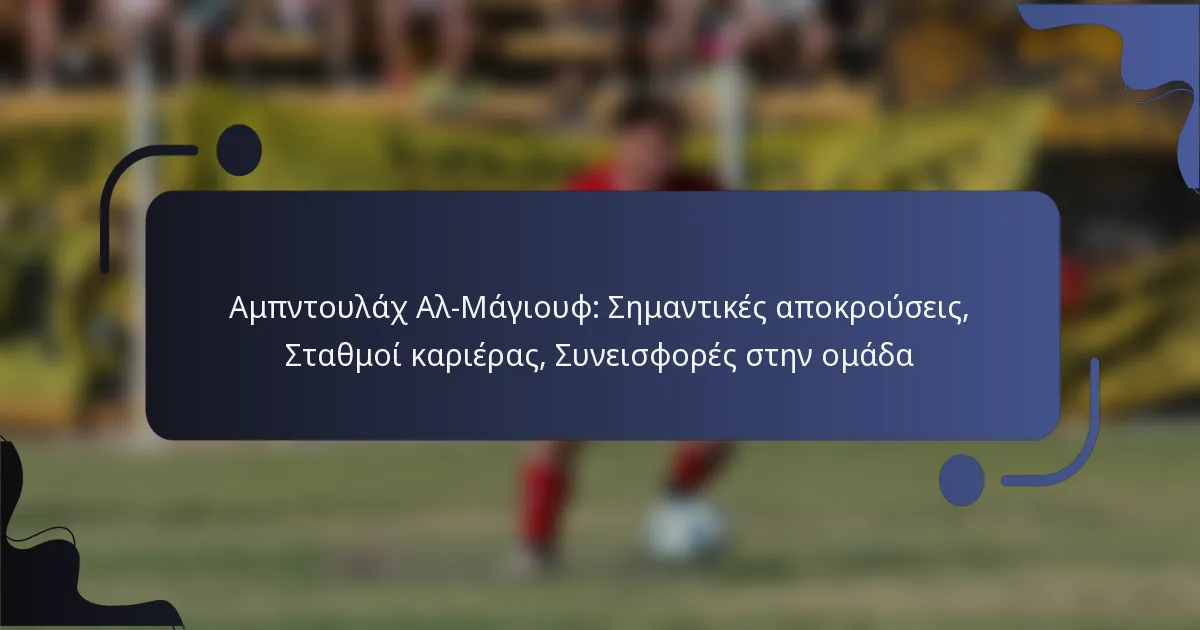 Πώς έχει συμβάλει ο Αμπντουλάχ Αλ-Μάγιουφ στην επιτυχία της ομάδας του;