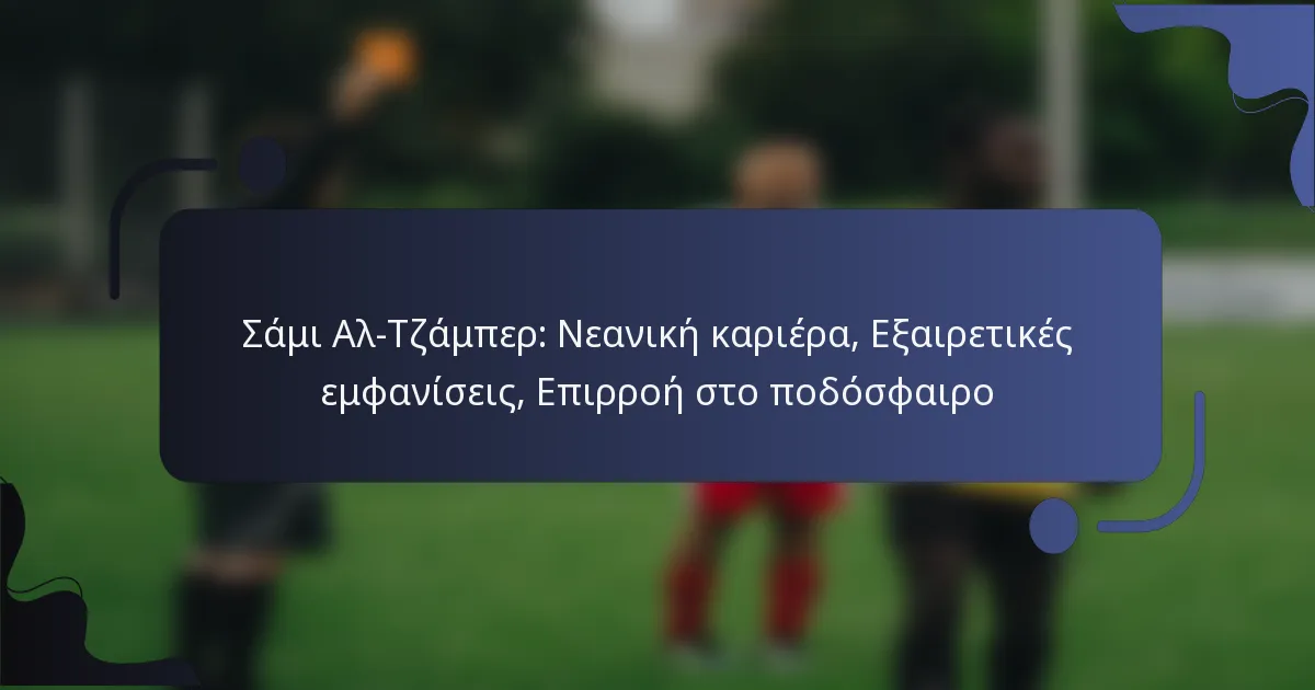 Η καριέρα του Σάμι Αλ-Τζάμπερ στις ακαδημίες έθεσε τα θεμέλια για την επιτυχημένη επαγγελματική του πορεία στο ποδόσφαιρο, με σημαντικές επιρροές και επιτεύγματα. Οι πρώτες του εμπειρίες σε ακαδημίες διαμόρφωσαν τις ικανότητές του και το πάθος του για το παιχνίδι, οδηγώντας σε μια αξιοσημείωτη μετάβαση στο επαγγελματικό ποδόσφαιρο.